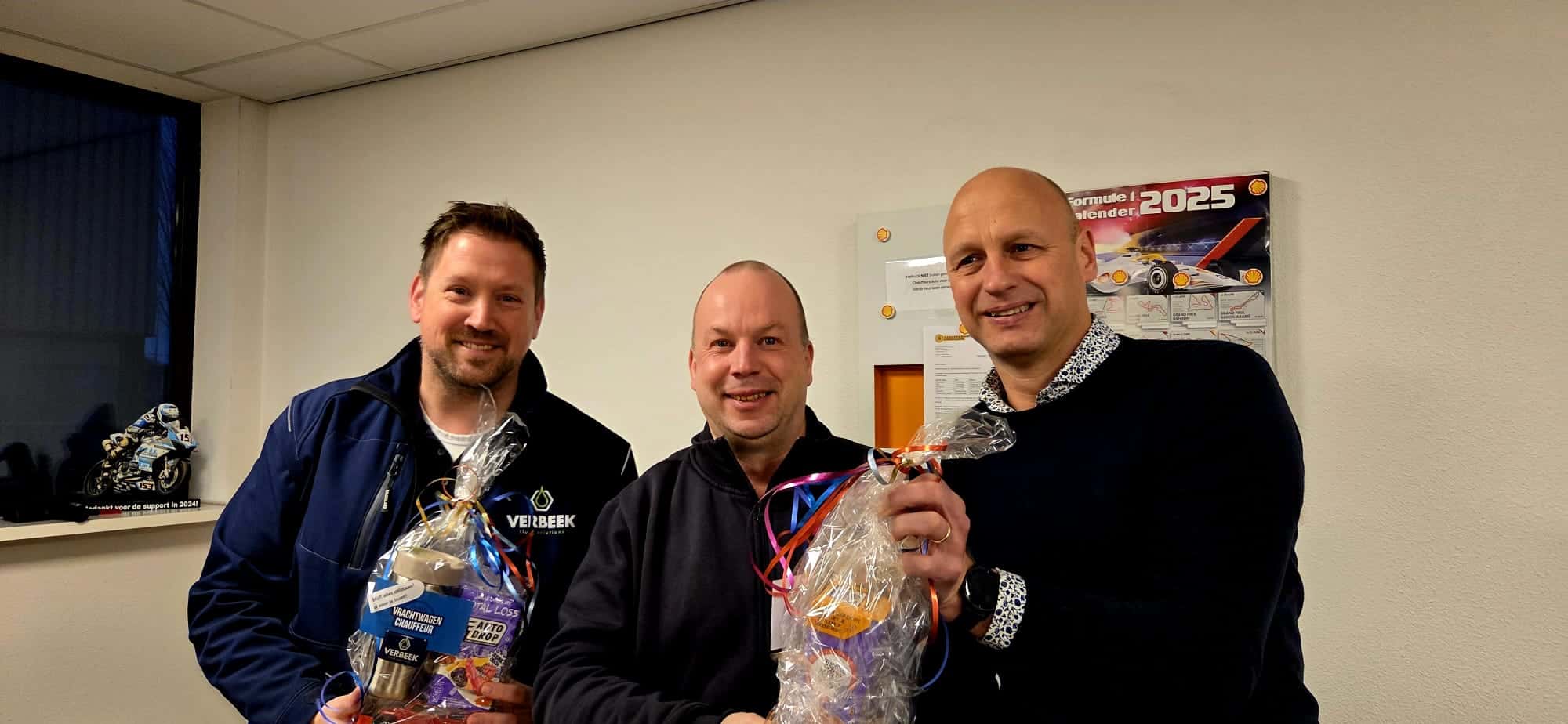 Daarom staat er vandaag iets lekkers voor ze klaar bij Verbeek! Een kleine attentie voor een grote inzet, een en al gezelligheid en zelfs de Trucker Hits muziek staat aan! 😆 Aan al onze chauffeurs: dankjewel voor jullie harde werk, professionaliteit en doorzettingsvermogen. Zonder jullie staat alles stil. En natuurlijk zetten wij ook onze eigen logistieke toppers Gerrit (vandaag afwezig), Patrick en Rick vandaag in het zonnetje met een leuk pakket voor onderweg. 🎁